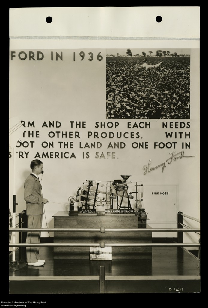 Ford continued to spread his soybean message at other expositions— sending the model soybean extractor to the 1936 Texas Centennial Exposition in Dallas and the 1939-40 New York World’s Fair.