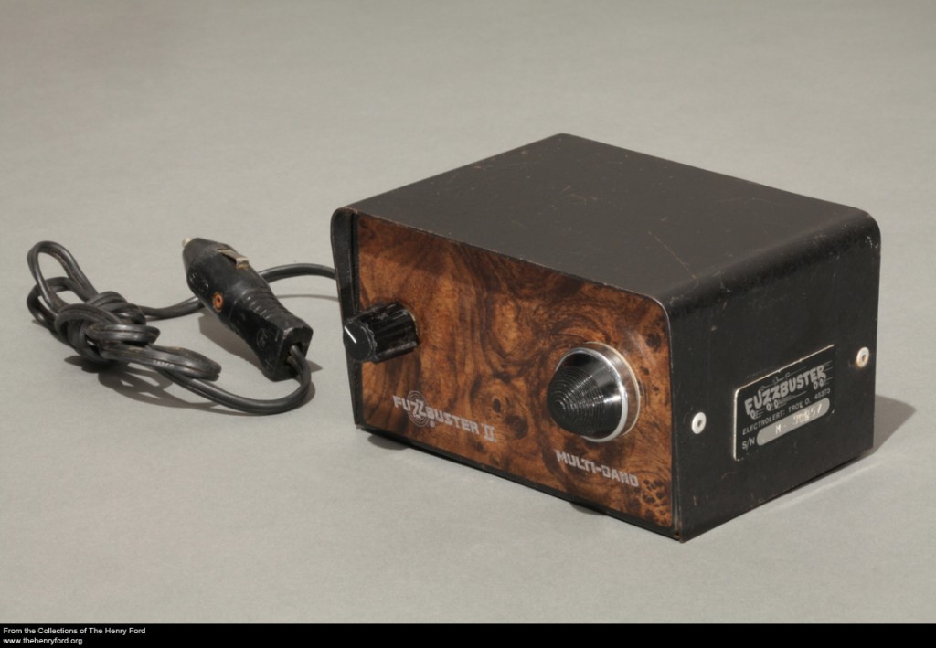 The “Fuzzbuster II Multi-Band Radar Detector,” meant to detect police car radar when posted speed limits were reduced because of the oil crisis, came out on the market the same year as “Star Wars.” THF104645