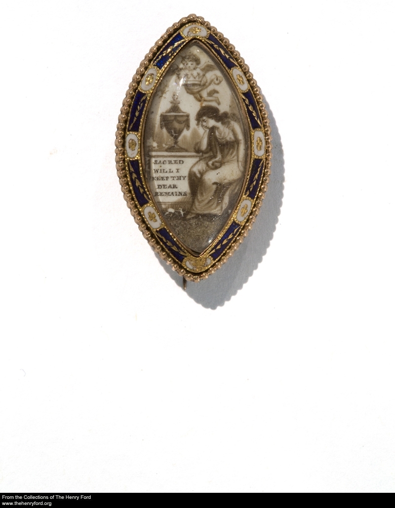 Over time, people have marked the deaths of their loved ones in many ways. One popular method in the 18th and 19th centuries was the wearing of mourning jewelry, which often incorporated the hair of the deceased. We’ve just added close to 50 more stunning examples of mourning jewelry and other memorial items to our digital collections, including the mourning brooch depicted here, a ring dating to 1716, and a doll’s coffin.