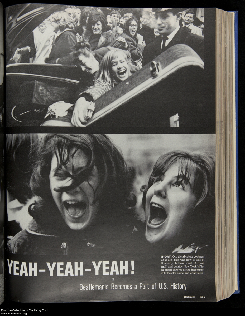 Perhaps the outpouring of emotion during the Beatles’ first visit to America in February 1964 can be partially explained by the fact that the nation was still in mourning over a beloved President. Only weeks earlier—November 22, 1963—President John F. Kennedy had been assassinated and the aftermath of this tragic event was still making headlines. Young people took President Kennedy’s death particularly hard. With him seemed to go the optimism and the sense of possibility he had inspired. But then, mere weeks later, the Beatles appeared—bringing with them a new energy and excitement, an uncanny ability to flaunt authority, and an exuberance in their songs that rock ‘n’ roll music seemed to have lost in recent years. In her book, Where the Girls Are: Growing Up Female with the Mass Media, historian Susan Douglas described this link between President Kennedy and the Beatles: