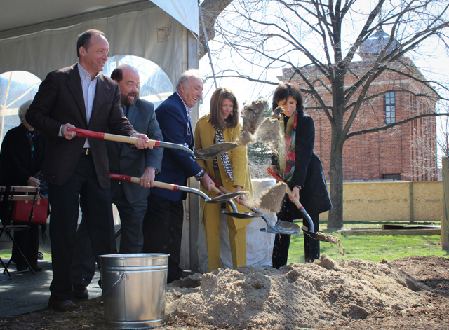 A little ceremonial dirt throwing and the groundbreaking is official! The playscape will open to guests in early fall. In the photo left to right: The Henry Ford’s chairman of the board, Evan Weiner; Dearborn mayor John O’Reilly; Don and Mary Koch, and Patricia Mooradian.