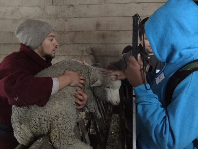 Members of the National Federation of the Blind of Michigan experience what a Merino sheep feels like during a recent visit to Firestone Farm in Greenfield Village.