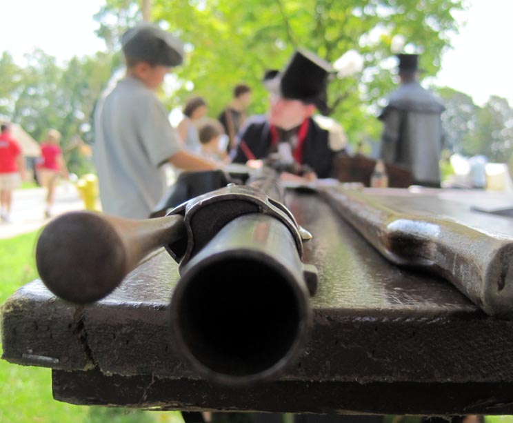 The Captain who trained the new recruits was really fun. The kids enjoyed his instructions and sound effects as they learned the procedure for (pretend) loading their (pretend) muskets. Actually, just watching most of them figure out left from right was entertaining. A ragtag group to be sure.
