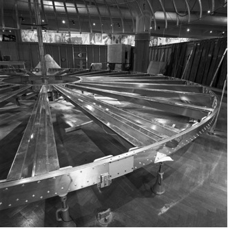 Last year we did some rather major surgery on the Dymaxion House. We opened up the floor and patched all 96 aluminum floor beams to reinforce them where many had developed cracks.