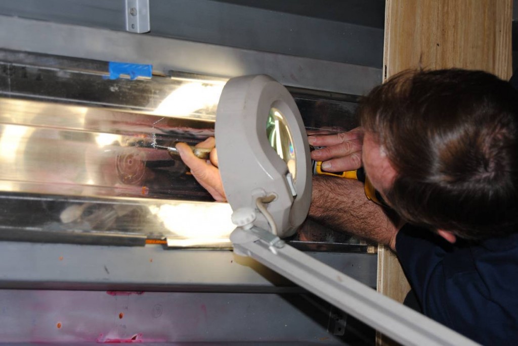 Just getting at the problem required the removal of hundreds of fasteners – the stainless steel bolts, wood screws and aluminum rivets that hold the whole house together. Removing all those rivets while working in such tight spaces was challenging.