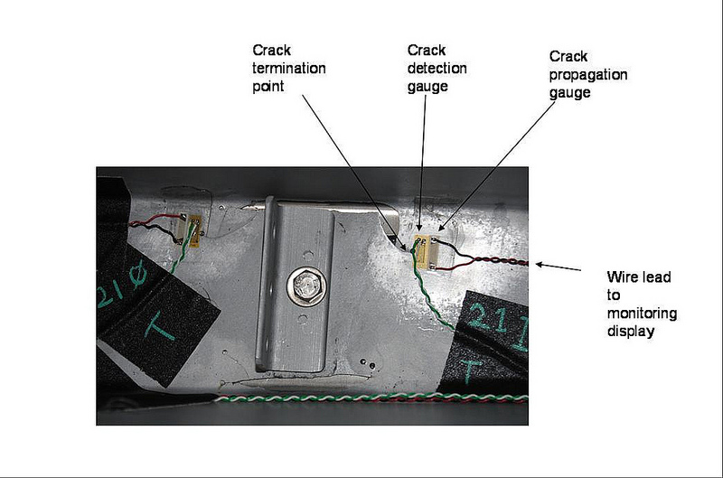 The crack detection gauges will alert us to a crack that is starting, and the propagation gauges will tell us how quickly a new crack is progressing.