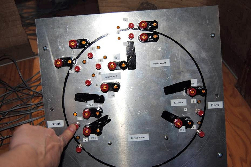 The monitoring board for the crack-detectors, located inside one of the closet “pods.”