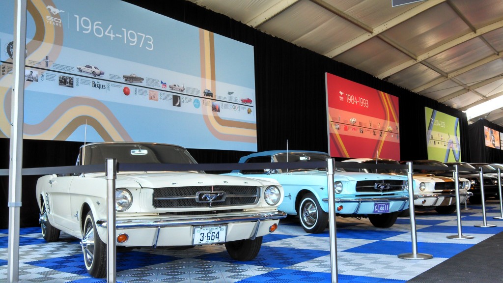 The Charlotte event, held at Charlotte Motor Speedway, opened in grand fashion on April 17. Fifty years to the day after Henry Ford II introduced the Mustang at the 1964 New York World’s Fair, current Ford Motor Company Executive Chairman Bill Ford unveiled the 50th Anniversary Edition 2015 Ford Mustang. Limited to 1,964 units, the 50th Anniversary car comes fully loaded but available in just two colors: Kona Blue and Wimbledon White – the latter something of a nod to Serial #1’s paint.
