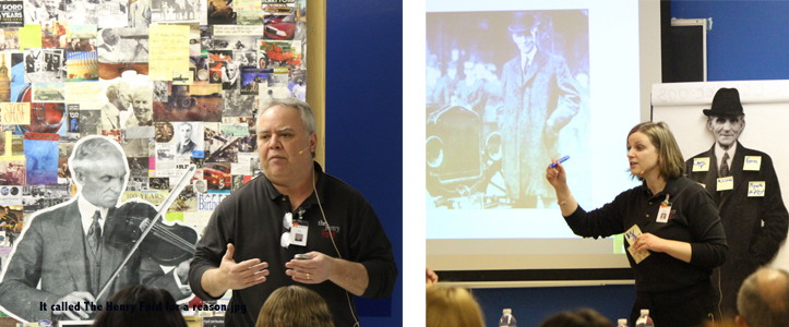 Above, Tim Johnson and Meg Anderson from The Henry Ford’s workforce development department engage new staff. You can see that Henry Ford himself remains an important part of the training.