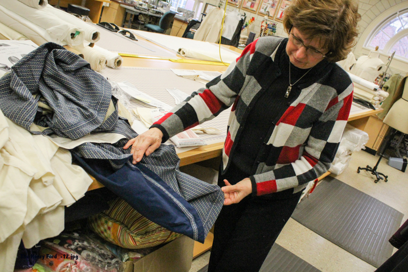 The studio works with curators and available historic resources to fit presenters with the most accurate period clothing. There are often multiple fittings. Tracy said that depending on the detail and the pattern challenges, there might be as many as 80 hours of work put in making one dress.