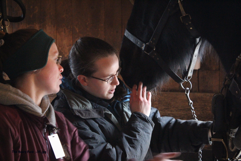 At the William Ford barn, I looked on as an experienced presenter and carriage driver instructed a new presenter in harnessing a horse. It looked pretty complicated to me, but Ryan Spencer, manager of Firestone Farm, assured me that after some practice, it only takes one person five minutes to collar, harness and hitch a team of two horses to a carriage.