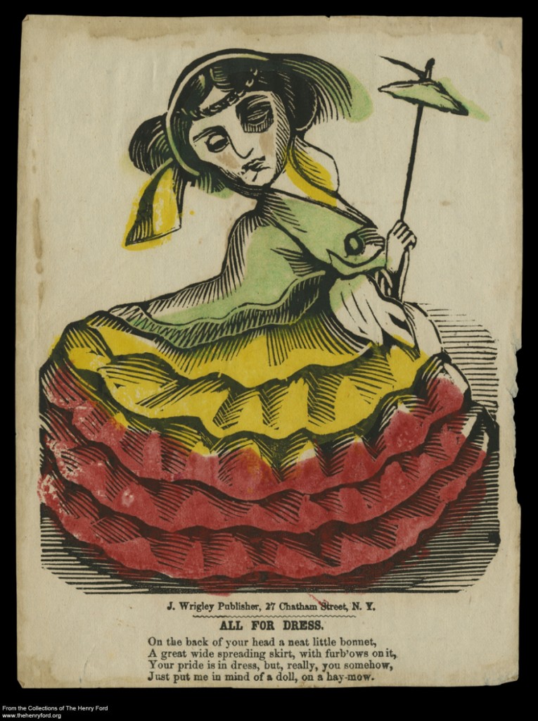Another characteristic that set these Valentines apart from their sentimental counterparts of the era was their price. They tended to be cheaply made, printed on one side of a single sheet of paper. They cost a penny and, when folded over into thirds and sealed with a bit of wax, they saved the cost of an envelope. Despite their low cost, they seem to have been popular among all social levels. And, although usually sent anonymously—allowing the sender to express his or her feelings without recrimination—some incredibly insulting Valentines have been found warmly inscribed “To My Valentine,” and signed with the sender’s name.