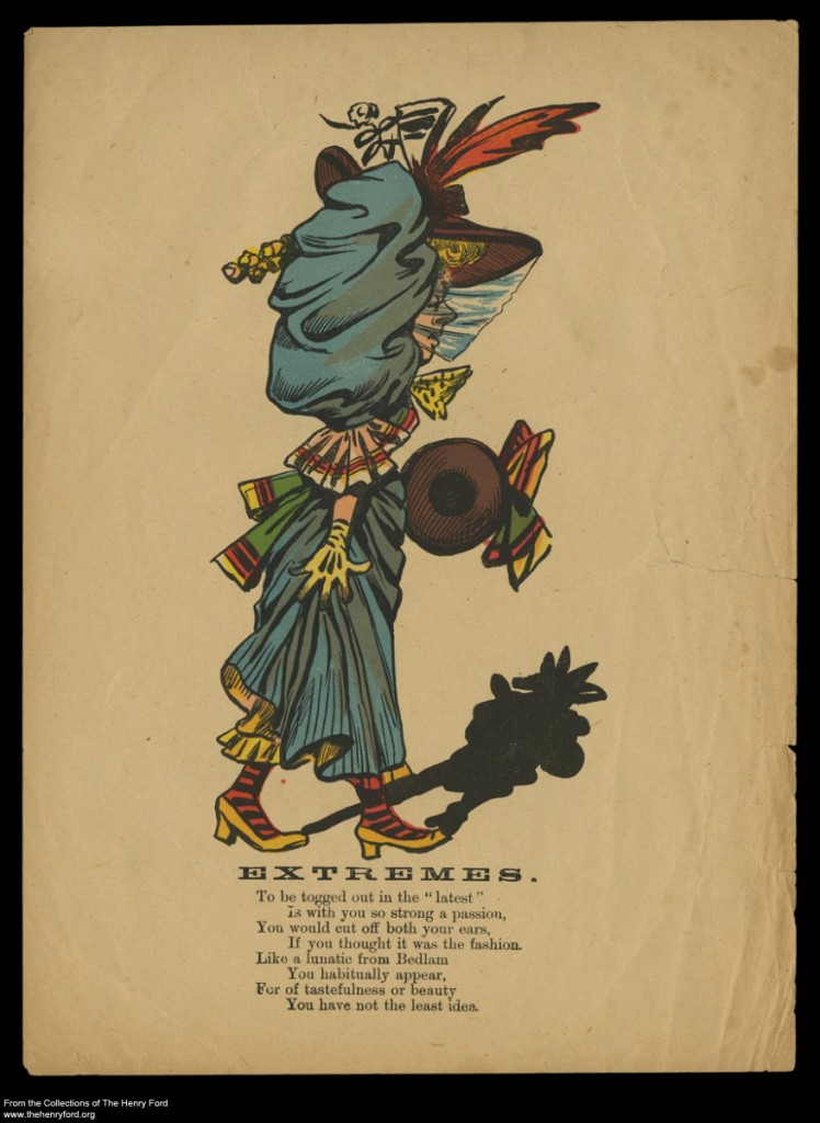 Whether these Valentines seemed comical or hurtful to individual recipients, their larger purpose was to reinforce social norms. Social norms are the standards by which we live, the shared expectations and rules that guide the behavior of people within social groups. These shared expectations and rules are learned and reinforced by parents, friends, teachers, coworkers. Does everyone in your office set their watch around the requisite coffee break? Is it taken for granted that your relatives will hug and kiss each other at family gatherings? Do your neighbors all keep their lawns manicured? In cases like this, don’t you feel pressured into behaving the same way as everyone else? You can be sure that if you’re not doing what everyone else is, people will find ways of making you feel rather like an outcast. This is all part of belonging to a culture and a society. These social norms provide the larger context for these Valentines. Within the atmosphere of a festive holiday, under the cover of humor, senders used these Valentines to critique a person’s behavior when they felt that his or her particular behavior deviated from the norm.