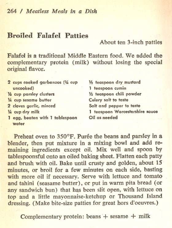 Hippie lifestyles of the 1960s encouraged Americans to think vegetarian in the late 20th century. This cookbook, first published in 1971, gave tips for cooking with non-meat protein-rich foods like grains, beans and peanuts instead of meat.
